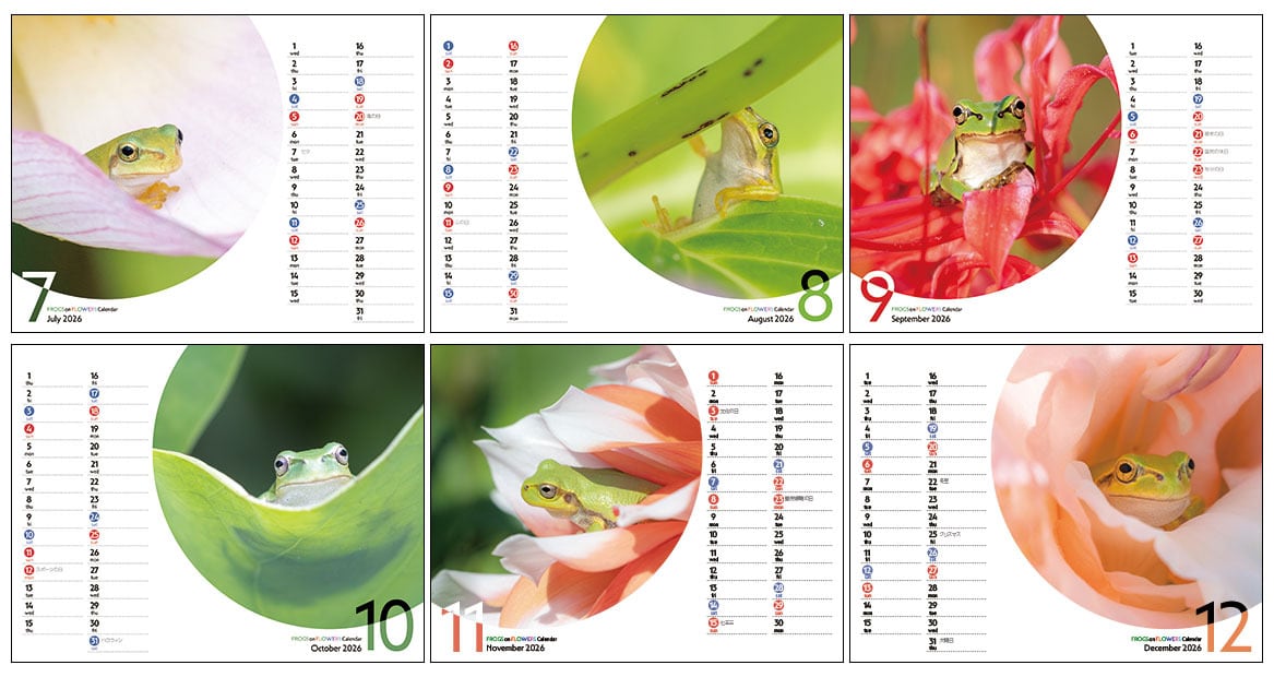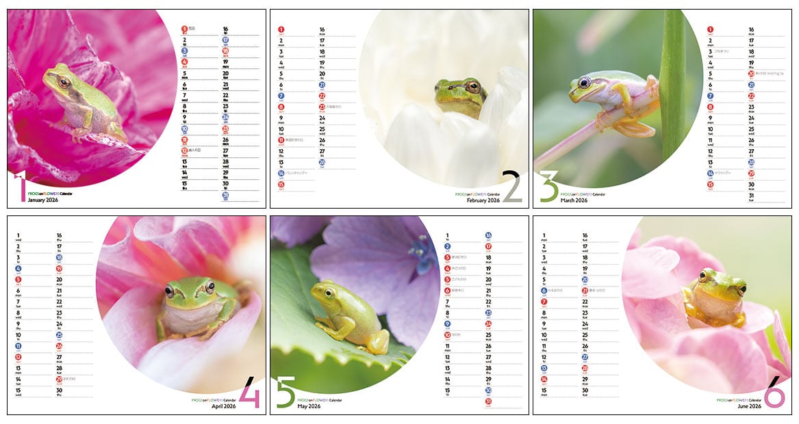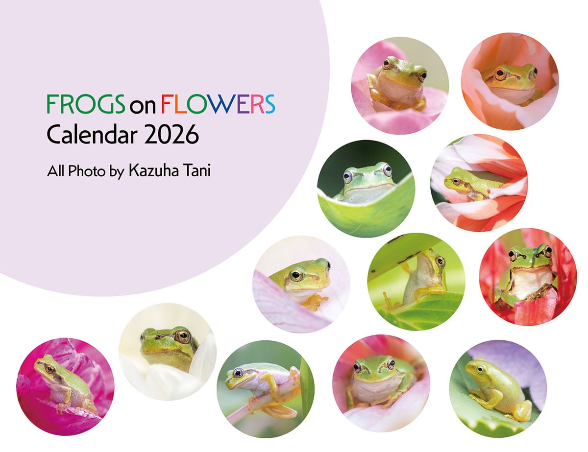 カエルと花が生み出す偶然の情景を撮影するフォトグラファー・谷和葉による卓上カレンダー・2026年版です。